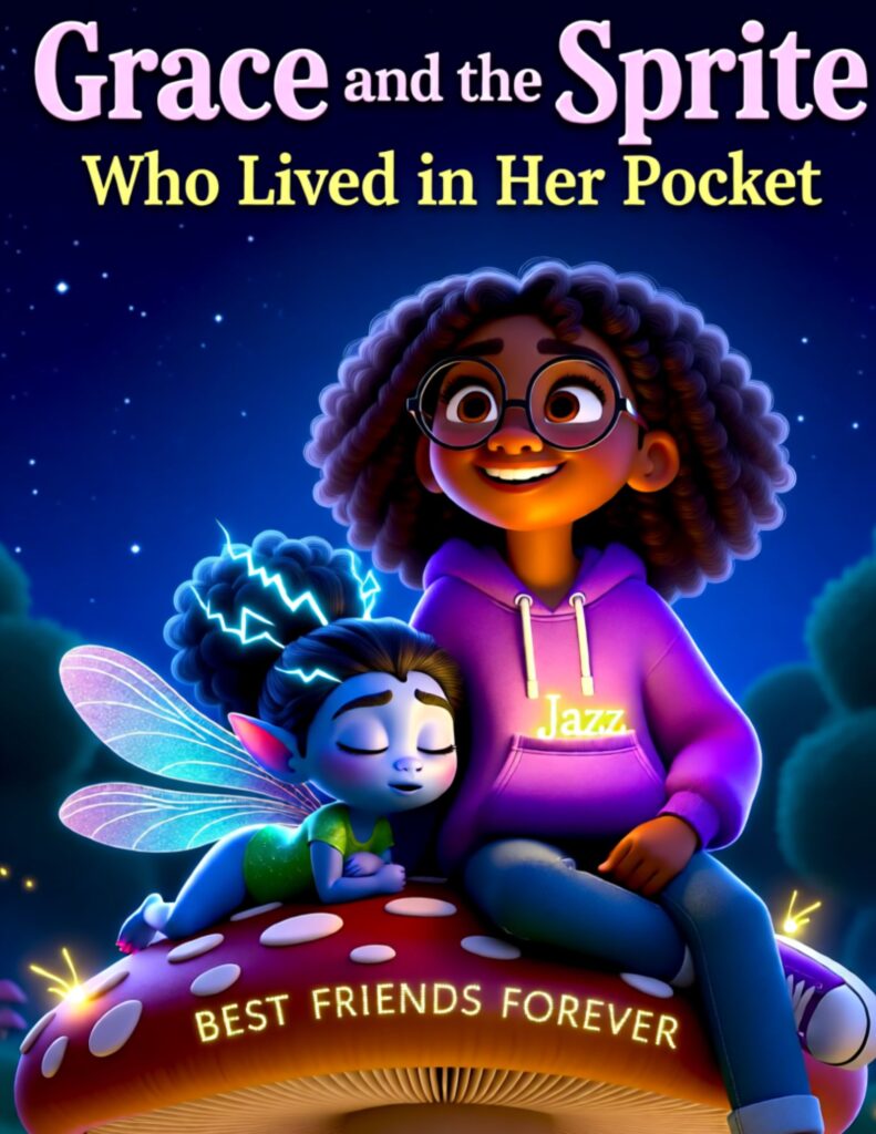 Grace was the quietest girl in Class 2B. She had warm brown skin, curly pigtails that bounced when she walked, and a voice so soft it sometimes disappeared completely. When the teacher asked a question, Grace’s words hid behind her teeth. At recess, she sat alone on the swings, wishing she could be brave like the other kids. Then one rainy Tuesday, a tiny sparkle fell from the sky and landed—plop!—right in the pocket of her yellow raincoat.