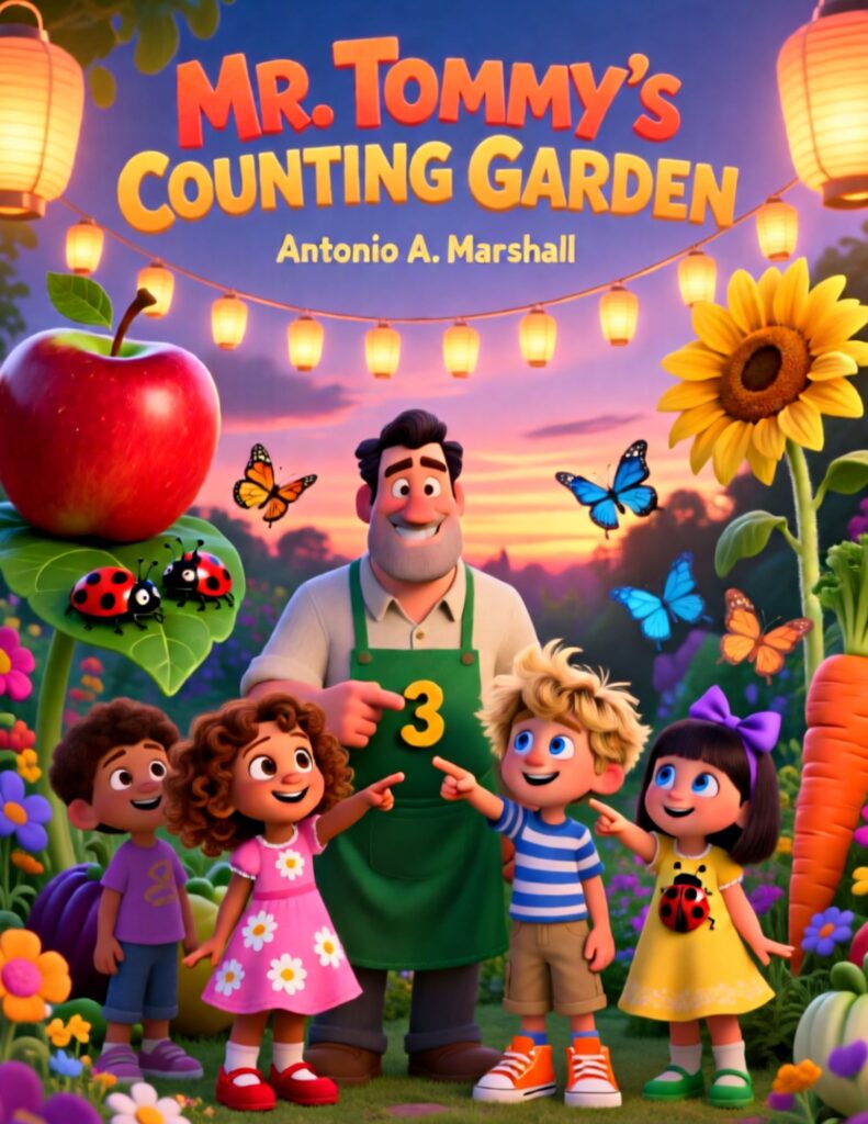 Mr. Tommy and his cheerful, diverse class plant, water, and count every petal, wing, and veggie together. From one sleepy snail to twenty twinkling fireflies, every page blooms with rhymes, repetition, and the happiest math you’ve ever seen.